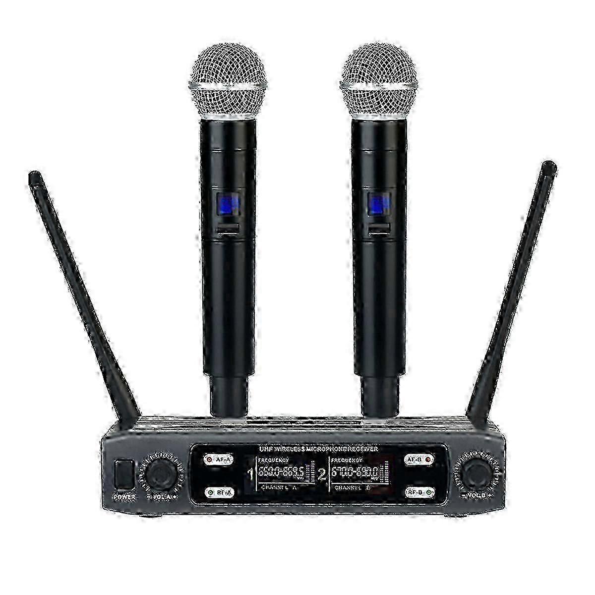 Wireless Microphone 2 Channels Handheld Karaoke Mic for Party Meeting Church Show Home