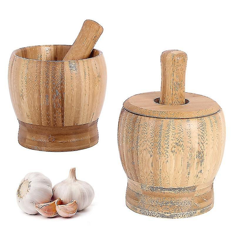 Auspicious-mortar And Pestle Set Premium Bamboo Bowl Garlic Press Crusher (1 Piece)