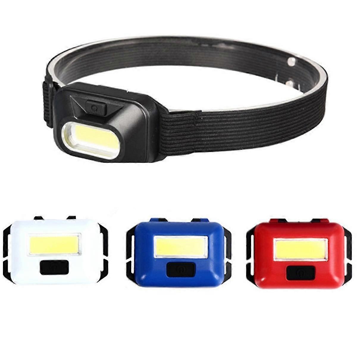 Mini Cob Aa Headlamp Plastic Headband Led Light For Outdoor Camping Hiking Night Riding Fishing
