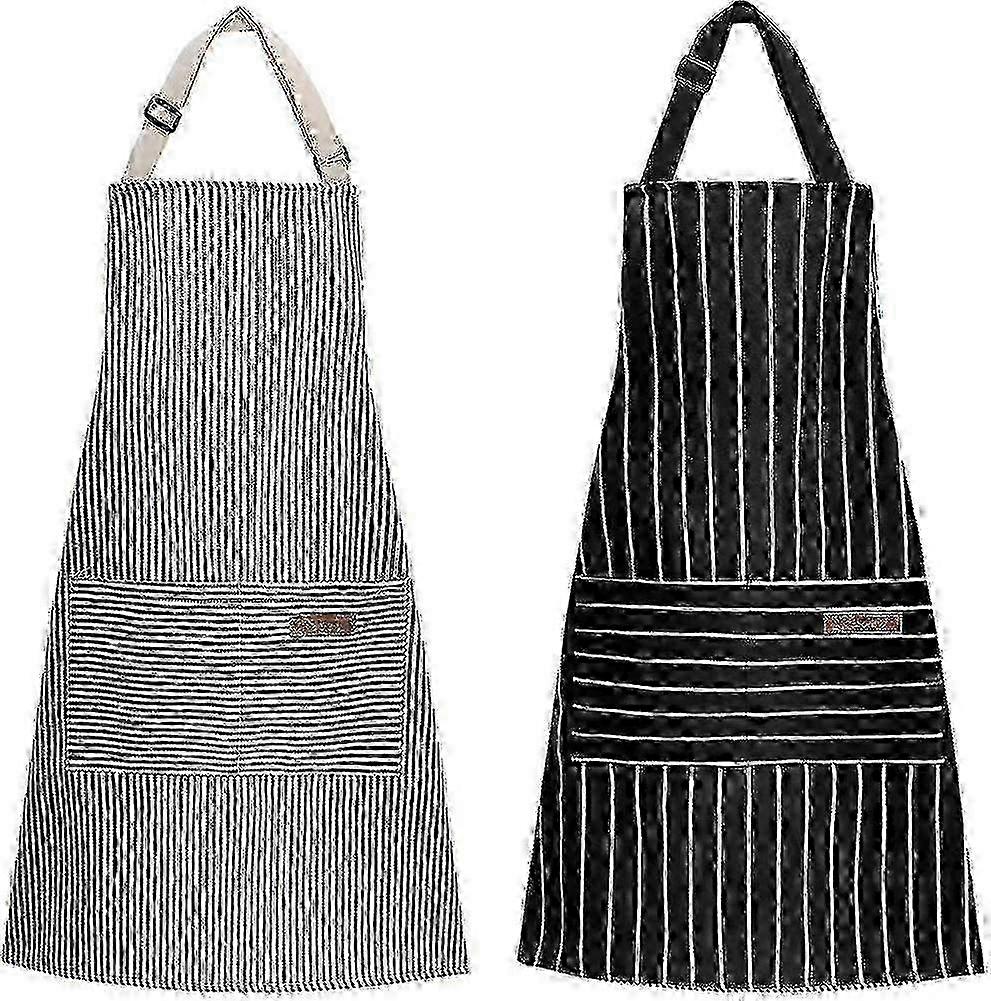 Unisex Adjustable Bib Apron - 2pcs Striped Cooking Kitchen Apron With 2 Pockets