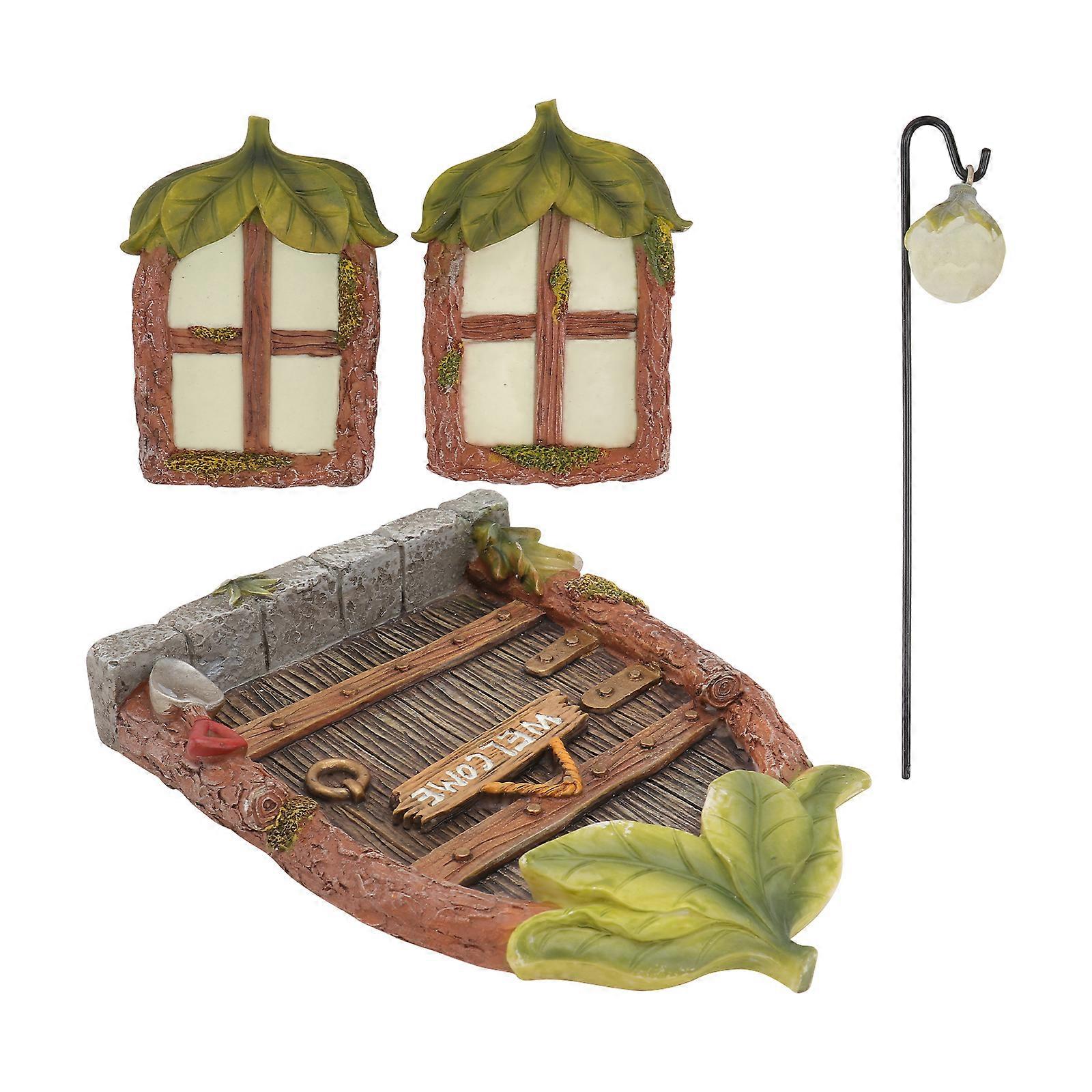 Luminous Door Window Model Resin Miniature Accessories Garden Decor 14.5x10.5cm 1 Set