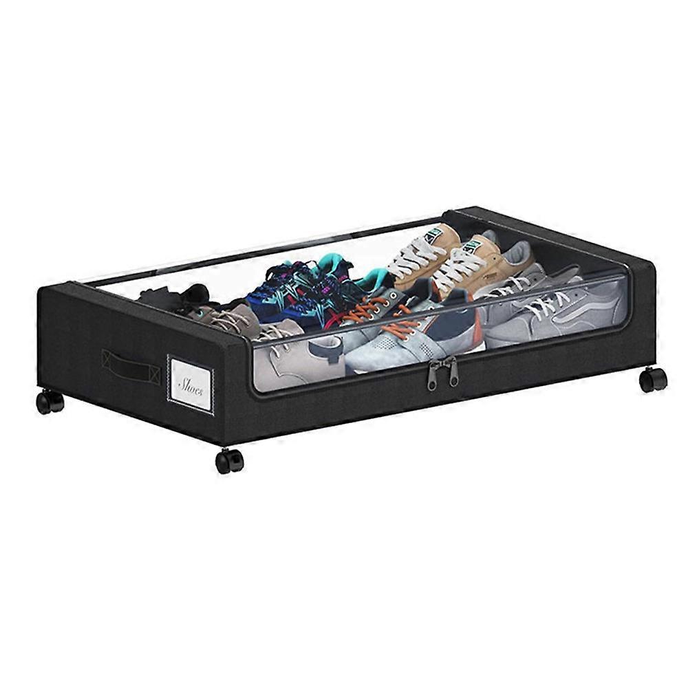 Moisture Proof Oxford Fabric Transparent Window Under Bed Storage Box with Wheels Compatible For Shoes Clothes Bedding