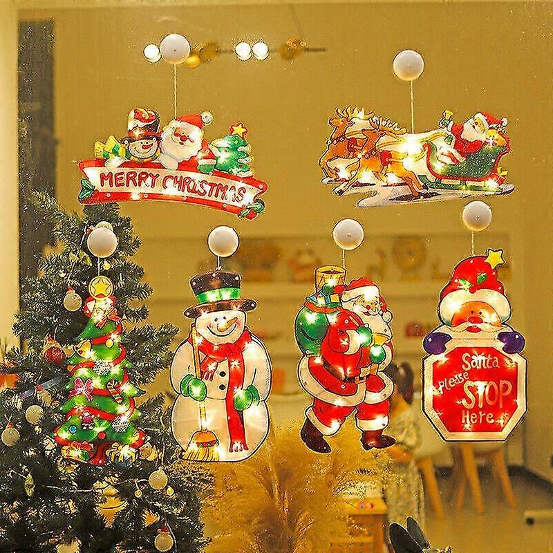 Christmas Window Hanging Led Light Xmas Ornament Suction Cup Battery Home Decor