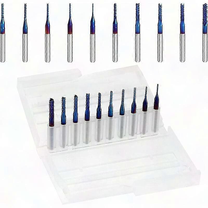 Nano Blue Coat CNC Router Bits Set, 1/8" Shank 0.8-3.175mm, 10-Pack for Carbon Fiber & Hardwood