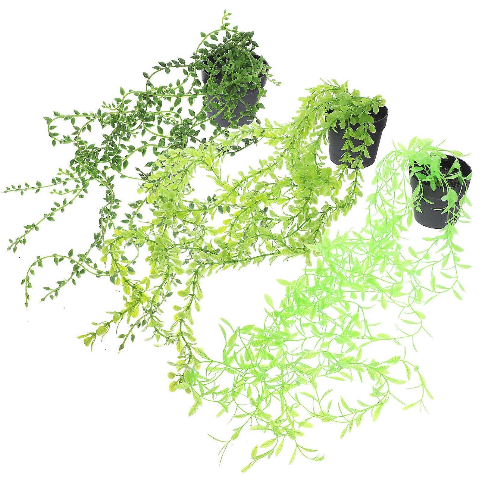 Artificial Hanging Plants Decorative Wall Mountable Non Wilting Plastic Small Potted Green 70x22cm 3Pcs