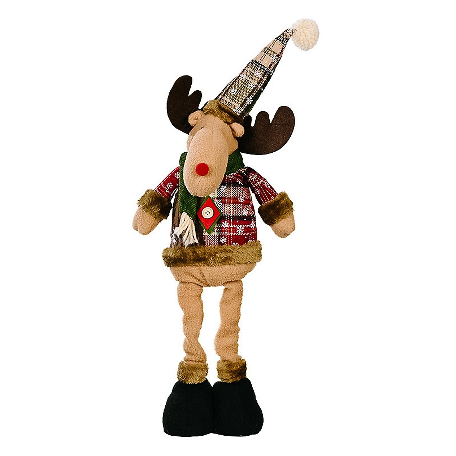 Snowflake Plaid Cloth Christmas Doll Figurine Decor Telescopic Legs Santa Claus Snowman Reindeer Sta