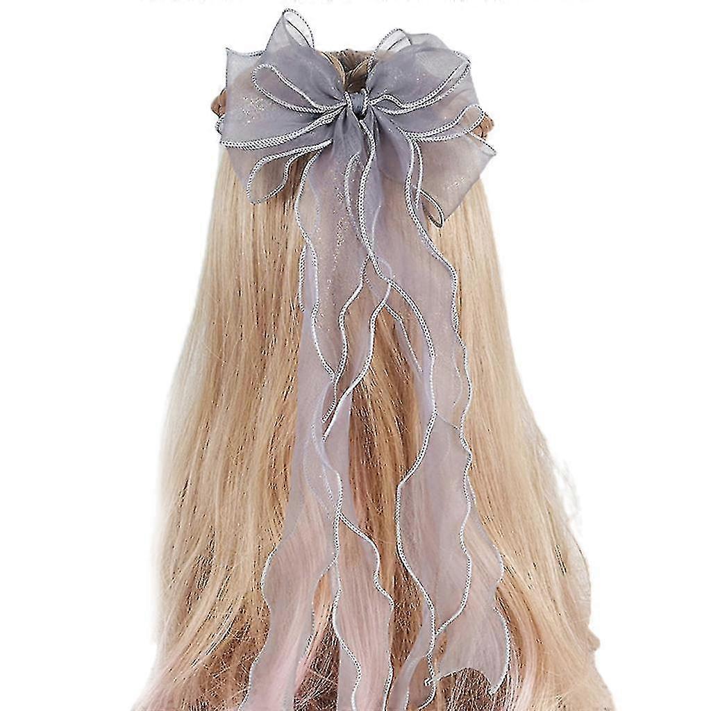 Women Girls 3-layer Big Bowknot Hair Clip Solid Color Glitter Long Ribbon Hairpins Ponytail Styling Braids Barrettes