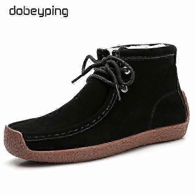 New Women KeepWarm Cotton Boots Cow Suede Leather Winter Woman Plush Women's Snow Boots Moccasin Ankle Female Flats Boots