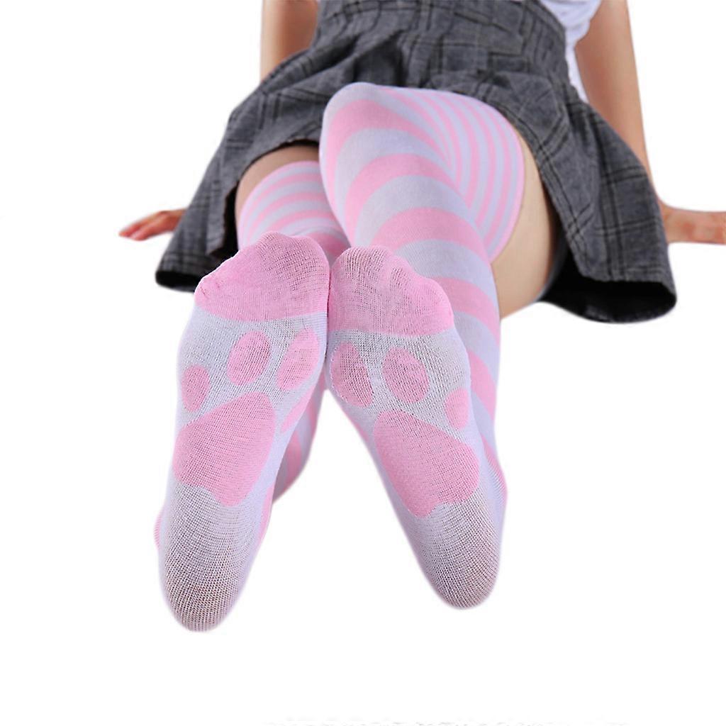 Women Girls Japanese Anime Over The Knee Long Socks Kawaii Cute Cartoon for Cat Paw Striped Print Thigh High Stockings Cosplay Costume Accessories