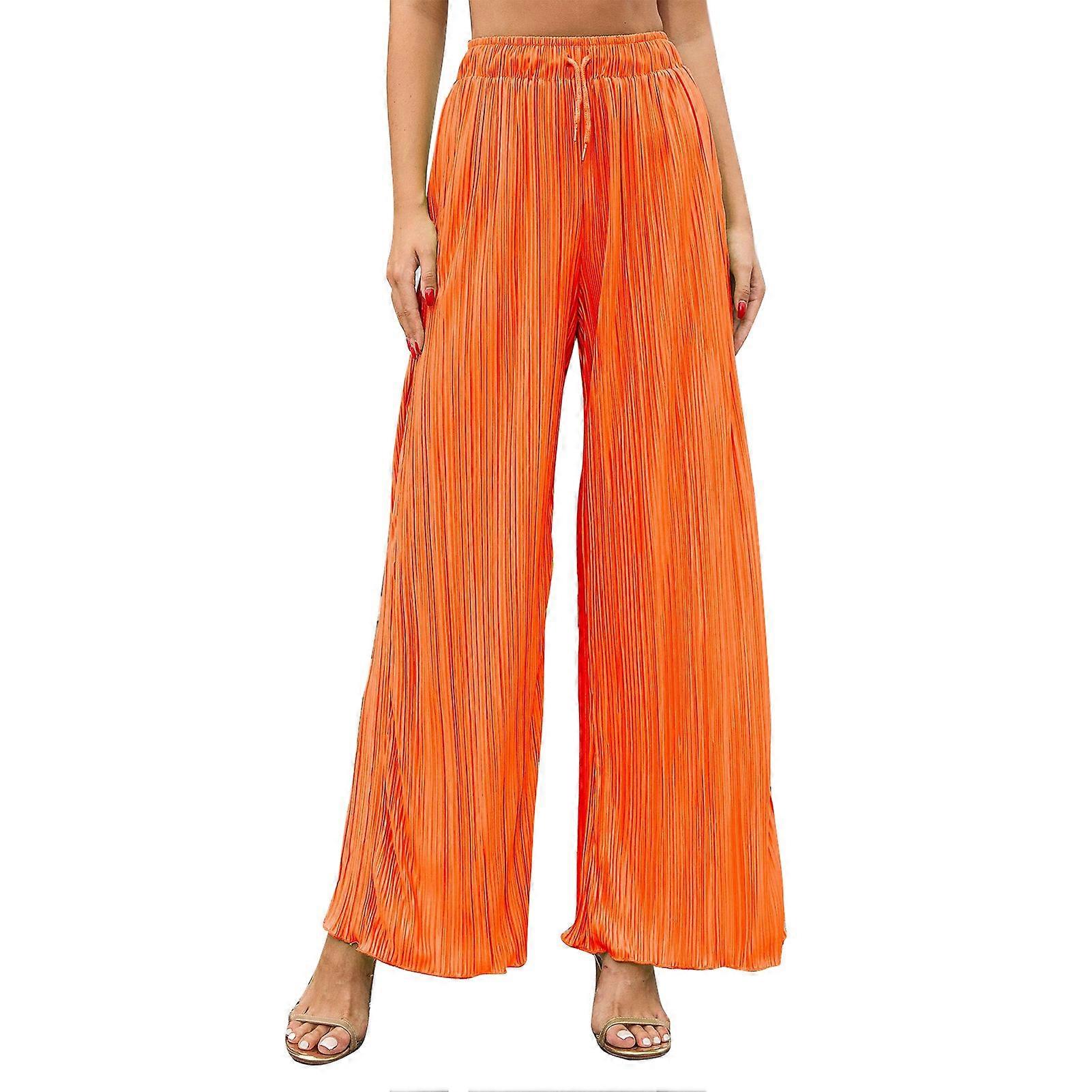 Women Wide Legs Pants Elastic Waist Drawstring Closure Pleated Casual Long Trousers for Daily Wear