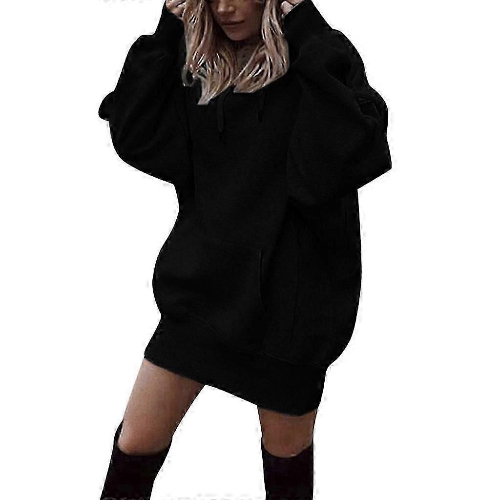 Womens Winter Warm Long Sleeve Hoodies Dress Solid Color Drawstring Pullover Tunic Tops Oversized Loose Sweatshirt with Pocket Gray L-2025