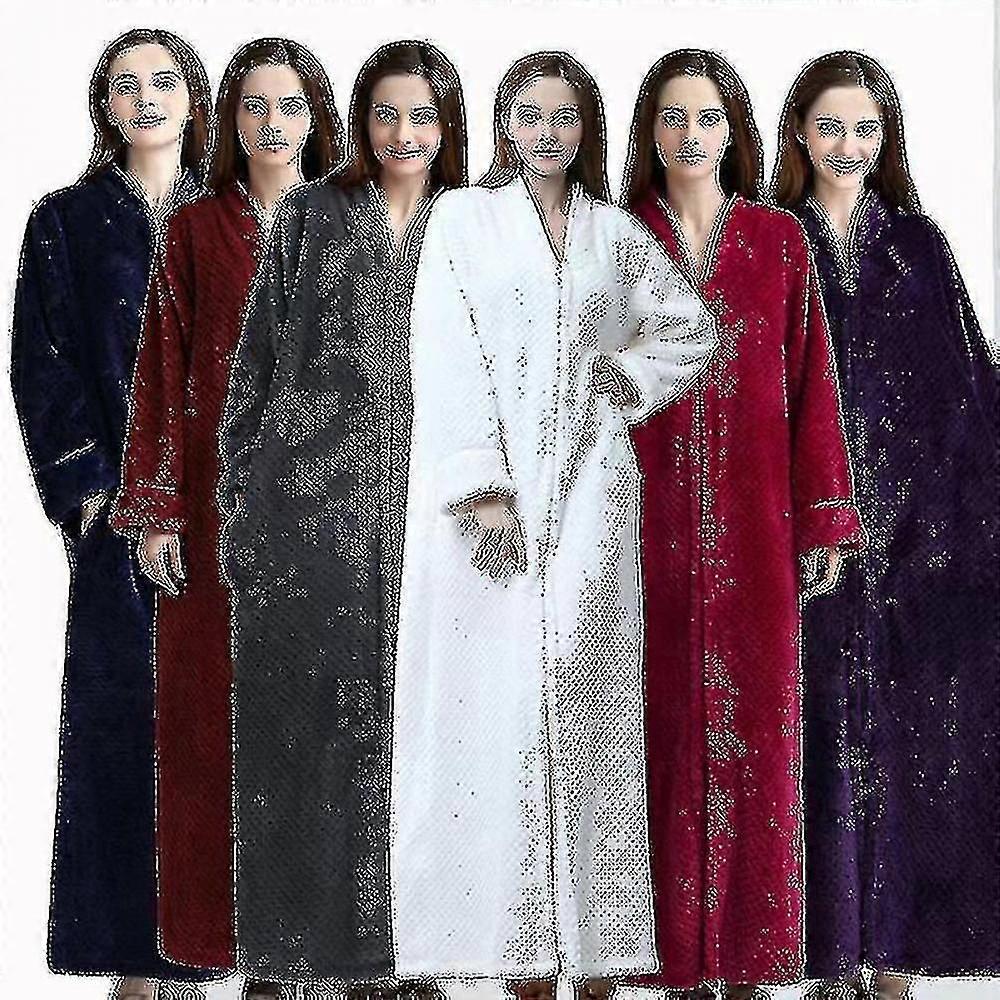 Womens Fleece Robe Plush Long Zip Front Bathrobe way Dxldv Gift