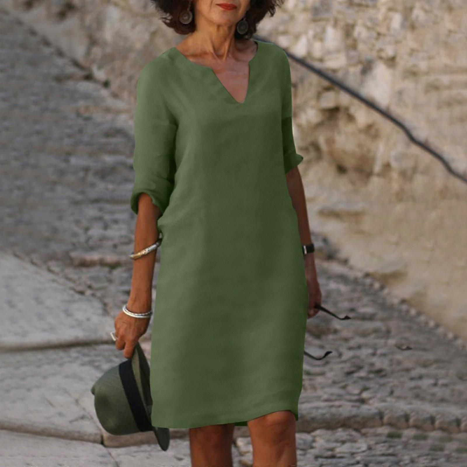 Women's Summer Retro Solid Color V-Neck Half Sleeve Dress Light Breathable Dress New Arrival