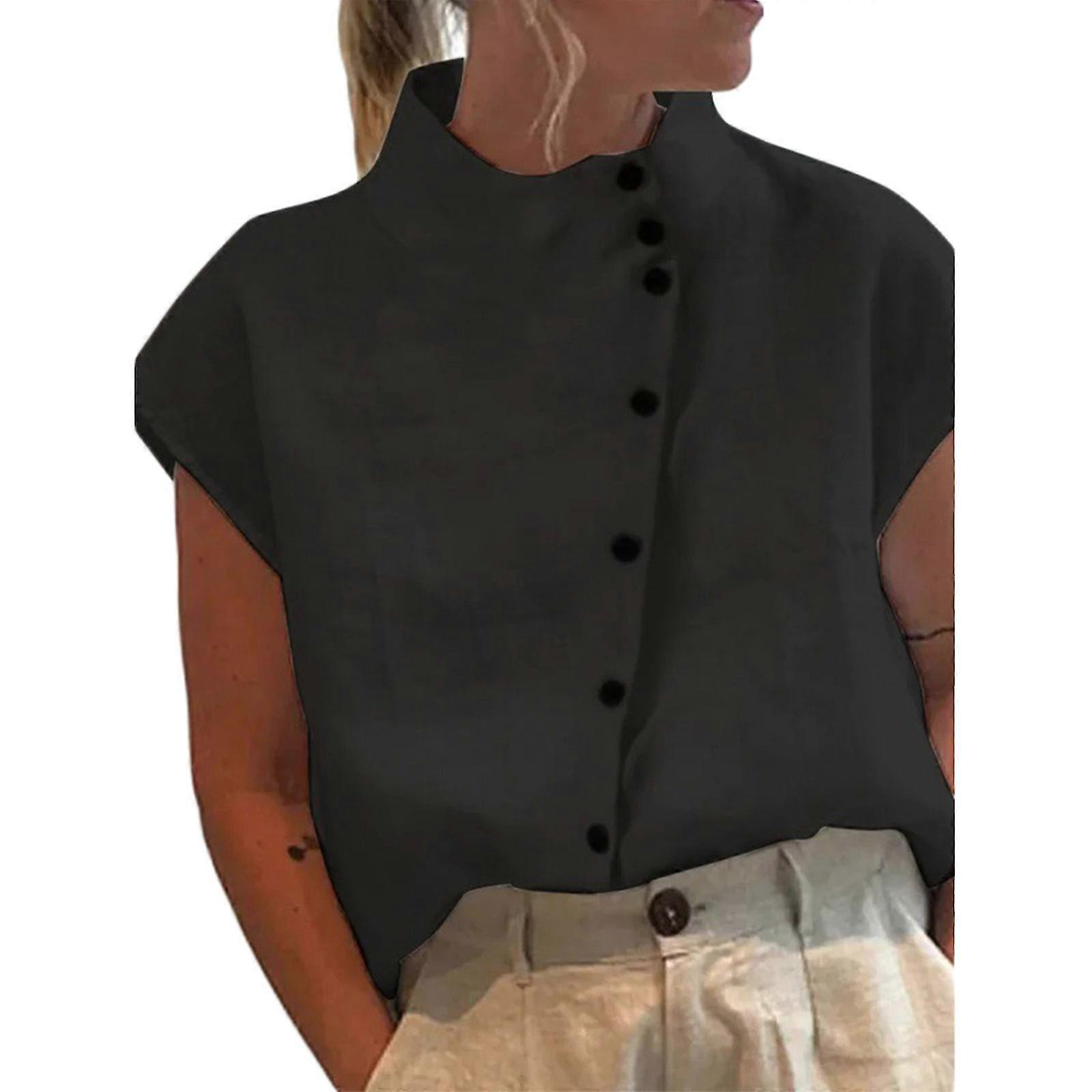 Women's Light Blue XXL Button-Down Shirt Short Sleeve Stand Collar Streetwear Top