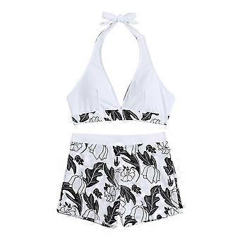 Womens Floral Print Bikini Set Two Pieces Swimsuit with Boyshorts High Waist Bathing Suit Fashion Swimwear Beachwear White XL