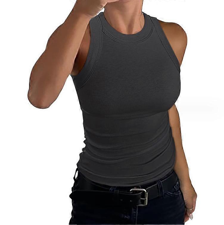 Womens Sleeveless High Neck Casual Basic Cotton Ribbed Fitted Tank Top