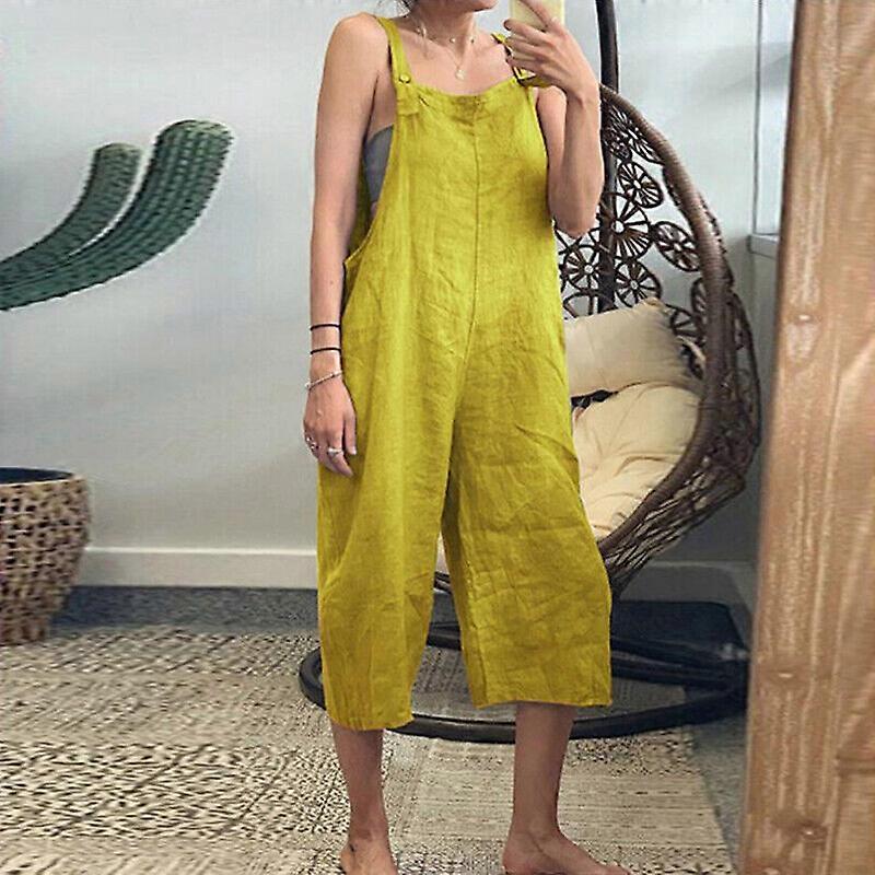 Women's Sleeveless Jumpsuit Dungaree Ladies Solid Loose Rompers Overalls Fashion