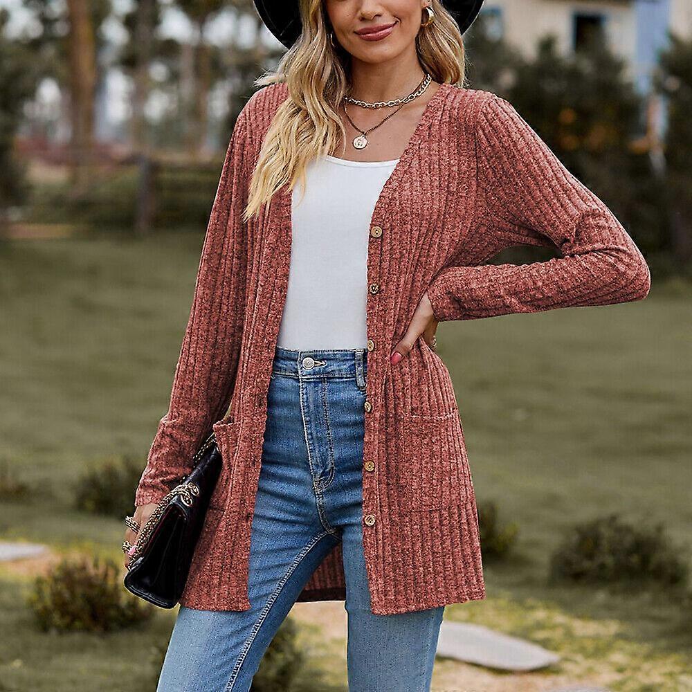 Women's Sweater Coat Cardigan Overcoat Knitted Autumn Warm Coat Tops Casual Long