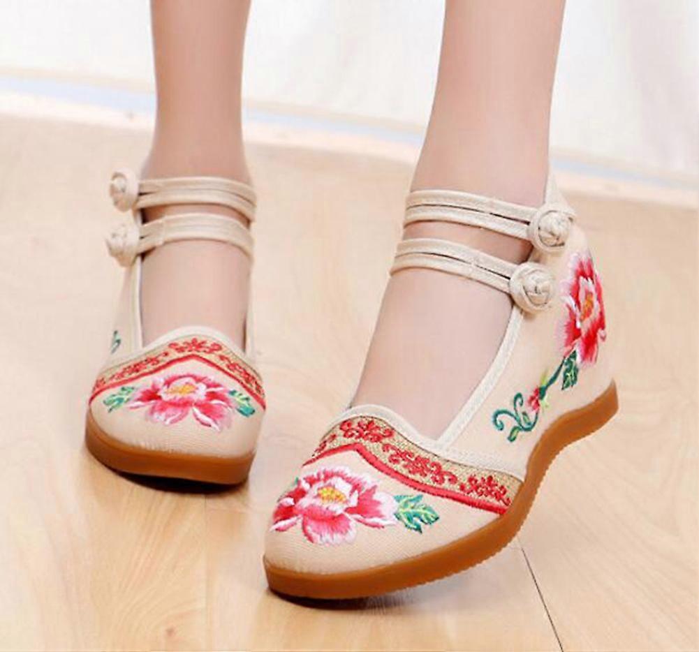 Women's Chinese Vintage Ethnic Embroidery high Heel Flat Elevator Cheongsam Dress Shoes Flower Lace