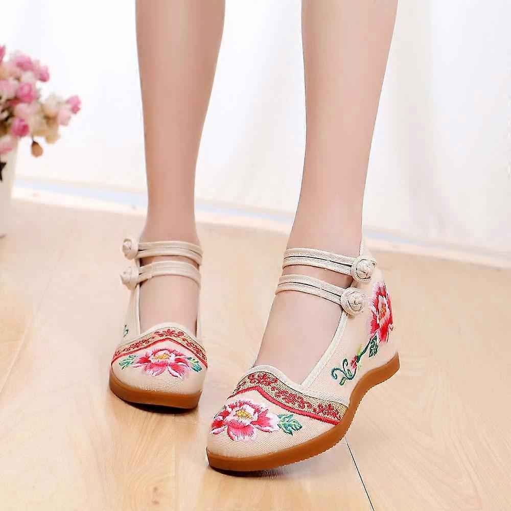 Women's Chinese Vintage Ethnic Embroidery high Heel Flat Elevator Cheongsam Dress Shoes Flower Lace