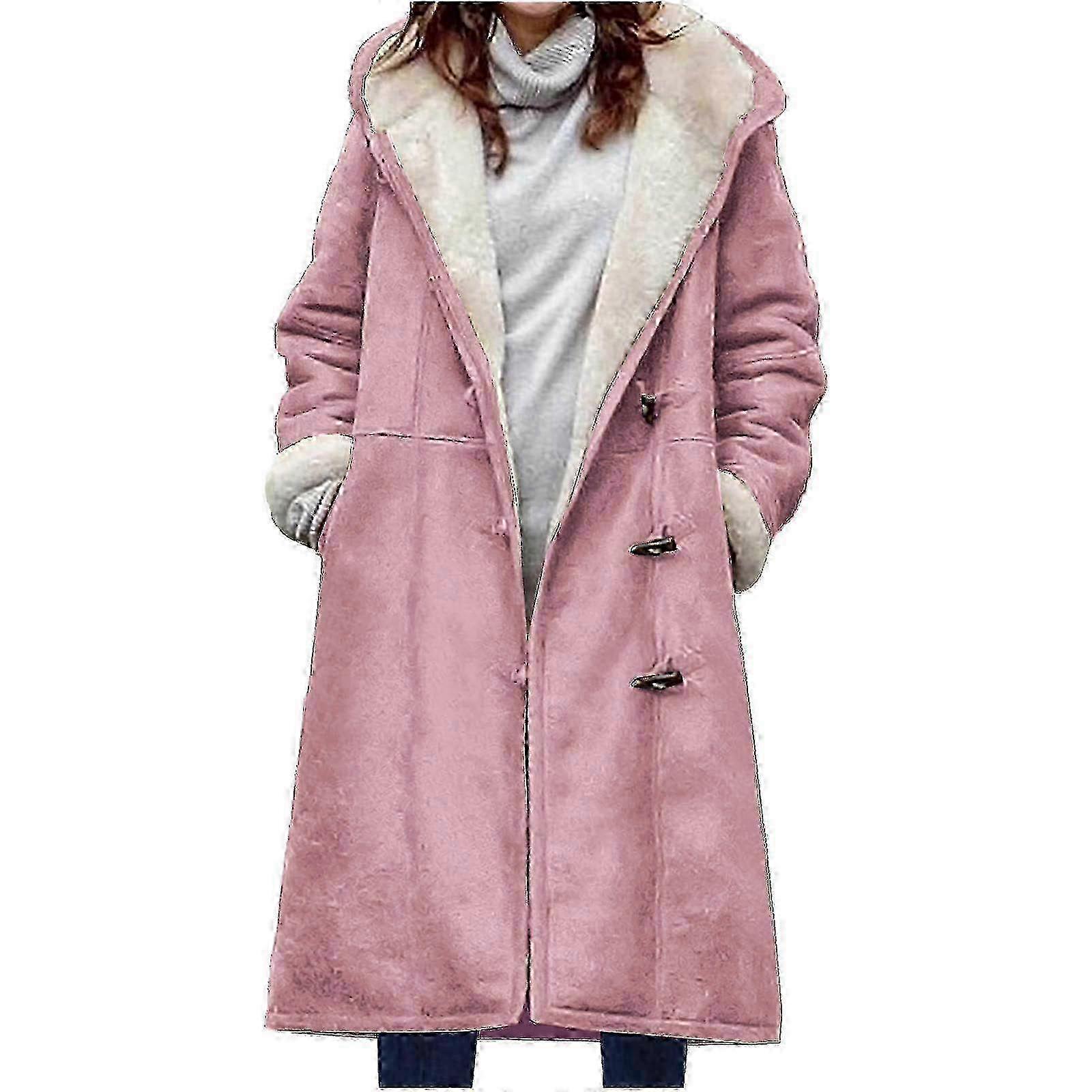 Women's Long Thickened Plush Coat Suede Solid Color Horn Button Pocket Trench Coat