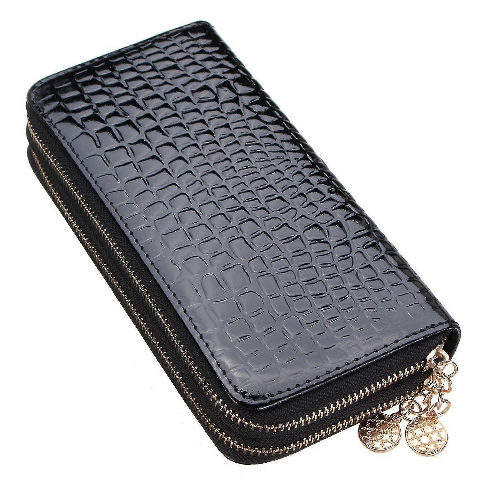 Women's long double zipper wallet ladies, elegant purse purse big purse girl-black p
