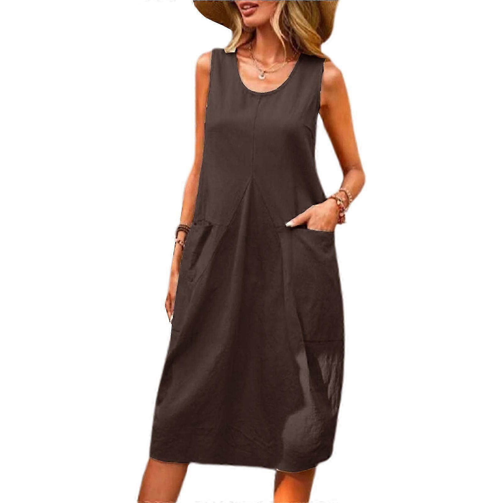 Women's Casual Loose Sundress Long Dress Sleeveless Maxi Dresses Summer Beaches Dress with Pockets Solid Color Gift light blue XXL
