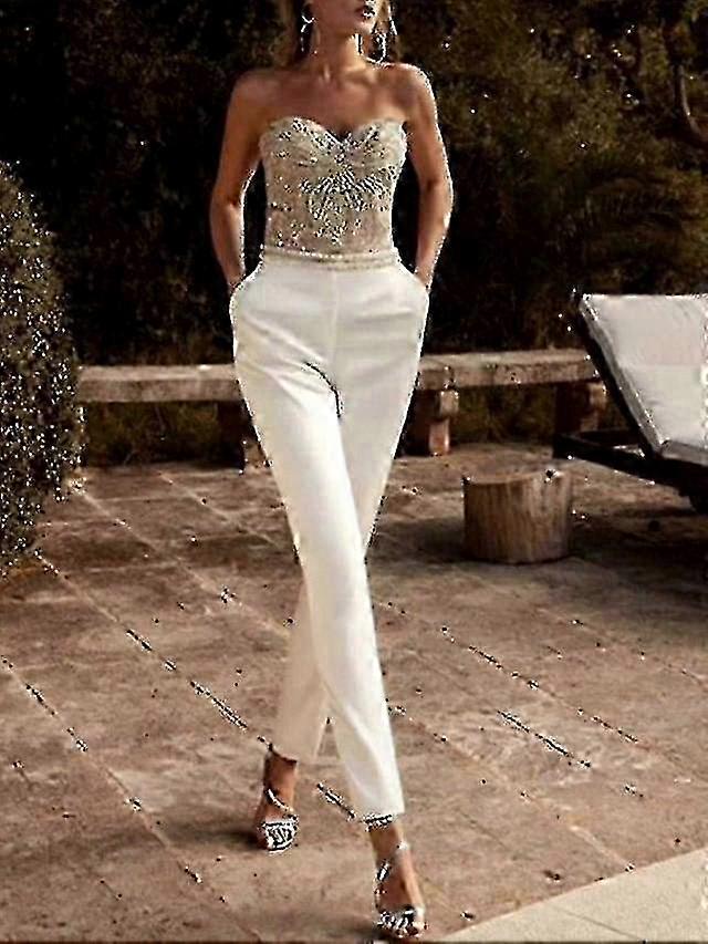 Women's Casual Sexy Party Wedding White Jumpsuit with Print in Solid Color Suitable for Various Occasions
