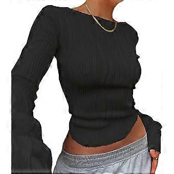 Women's Casual Basic Crop Tops Slim Fit Long Sleeve Crew Neck Solid Color Fall Pullover Shirts Tight Tee
