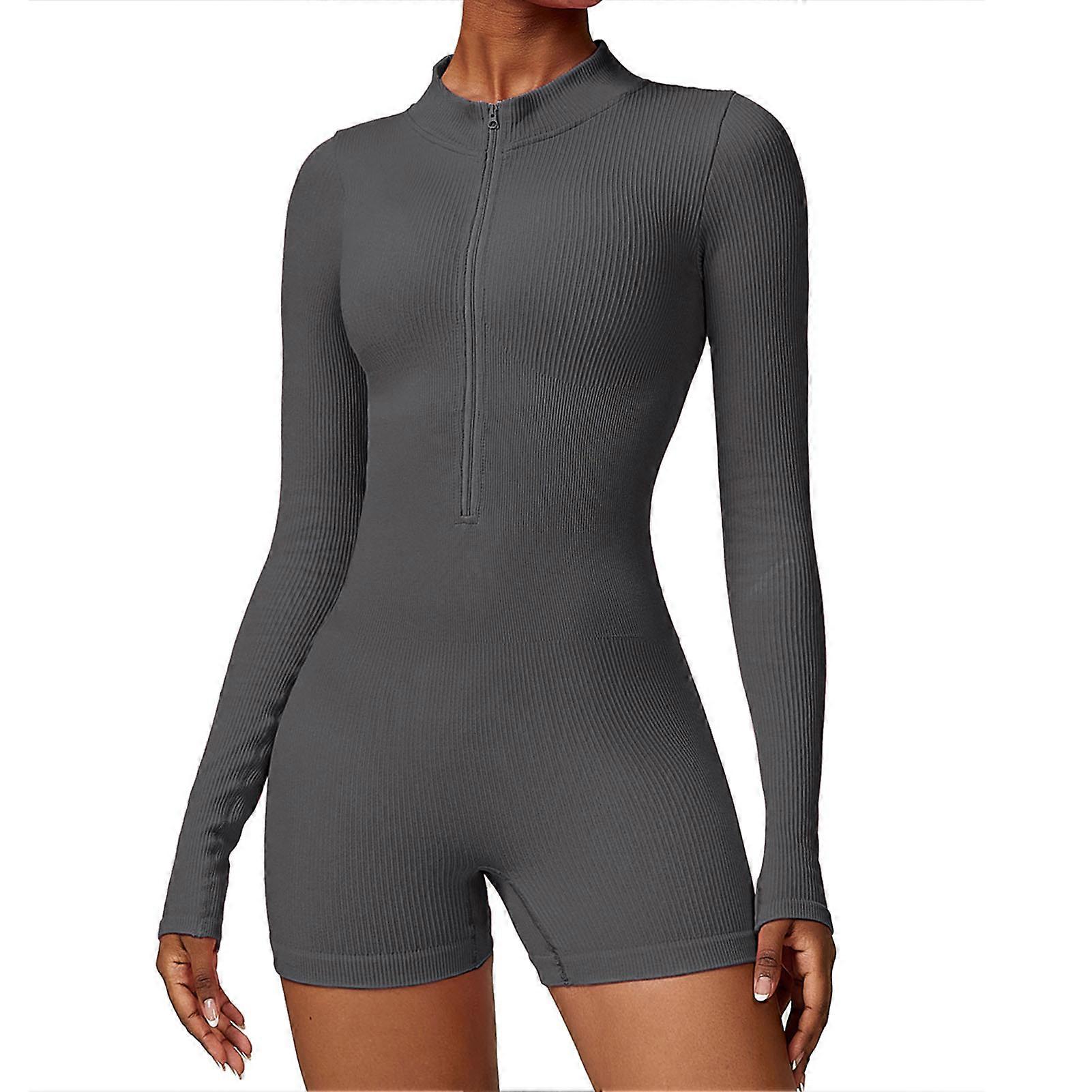 Women Slim Fit Bodycon Jumpsuit Long Sleeve Tummy Control Crew Neck One Piece Bodysuit Gray S