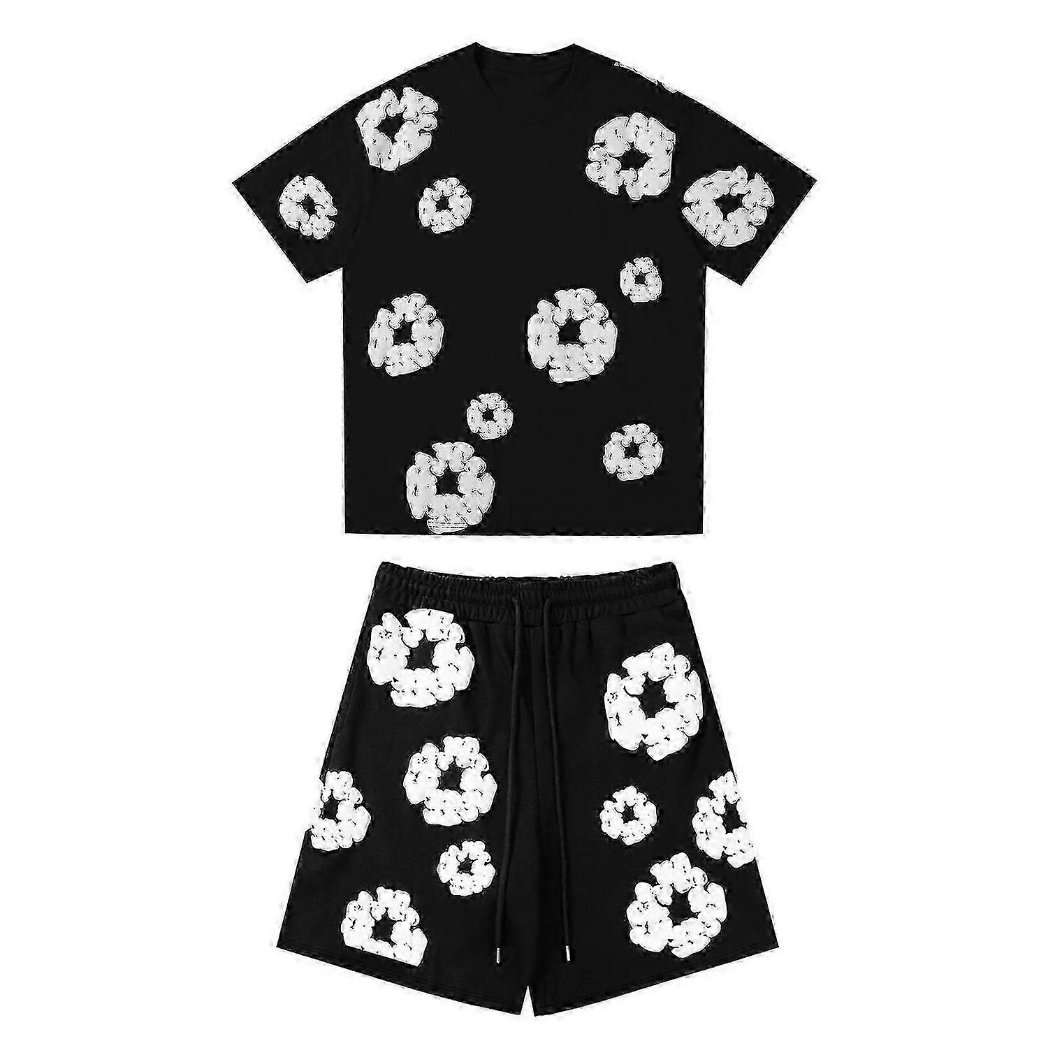 Women's And Men's Casual Loose Fitting Printed T-shirt And Shorts Two-Piece Street Fashion Trend Short Sleeves+shorts