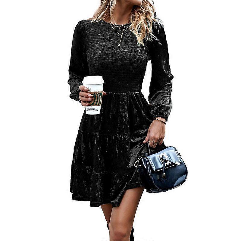 Womens V Neck Long Sleeve Velvet Dress Elegant Bodycon Dresses