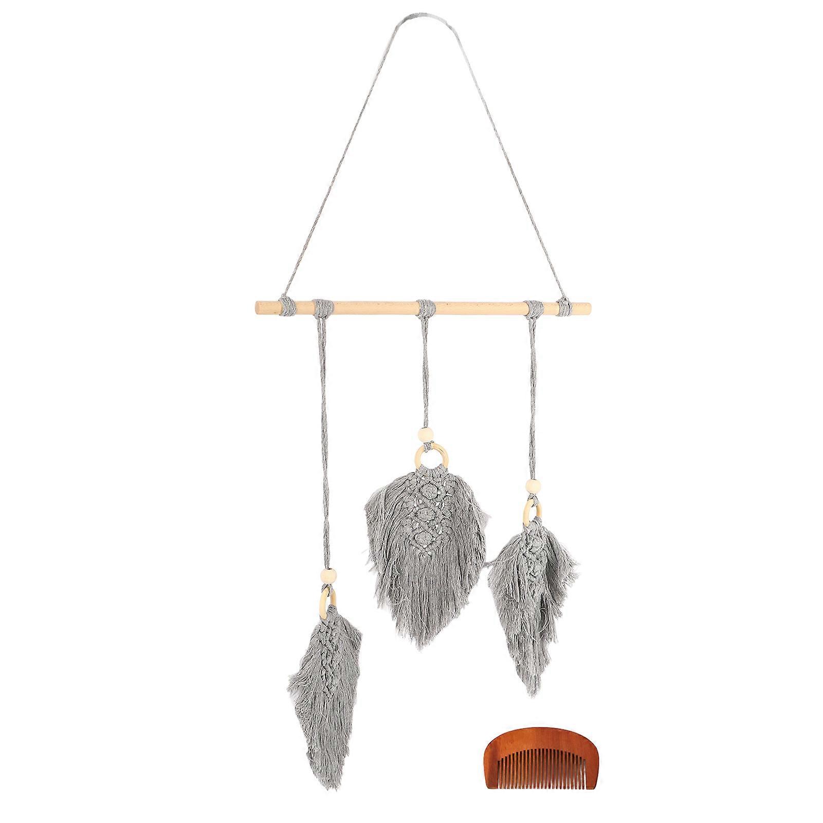 Handwoven Leaf Tapestry Boho Style Cotton Leaf Tapestry Wall Hanging Tapestry Decoration for Bedroom Dormitory Grey