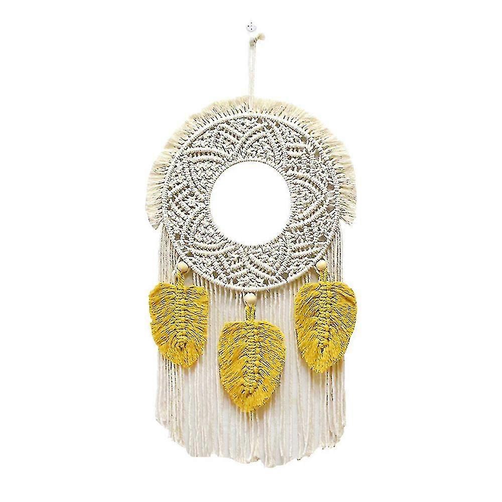 Macrame Feather Wall Hanging Boho Woven Tapestry - Beige&yellow
