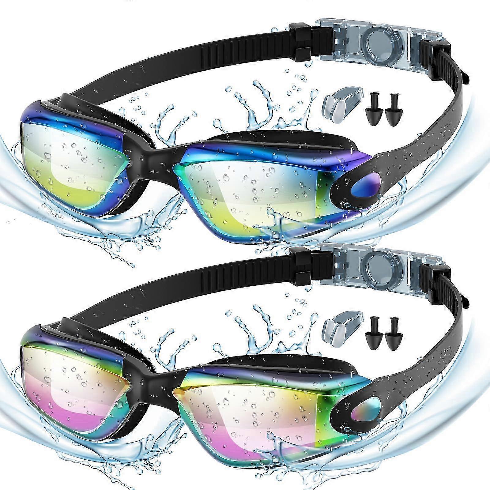 Swimming Goggles 2 Pack, Swim Goggles with Nose Clip & Earplugs Anti Fog No Leaking Clear Vision for Adult Women Men