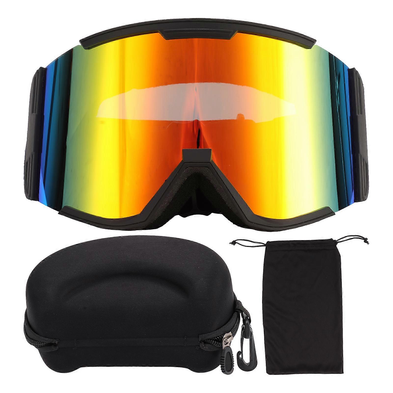 Adult Ski Goggles Double Layer Anti Fog Large Field Cylindrical Snow Goggles Windproof Climbing Glasses Black Frame Red Lens