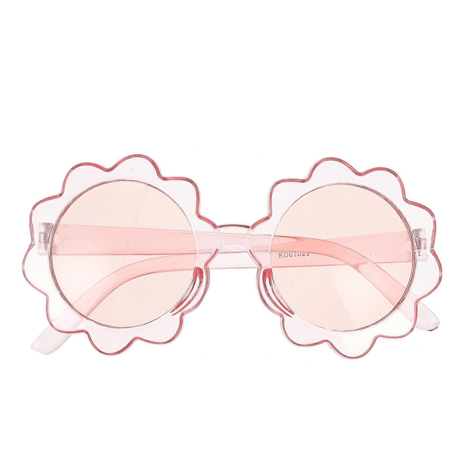 Round Flower Sunglasses For Kids Girls Outdoor Beach Fashion Accessory Pink 1Pack UV Protection