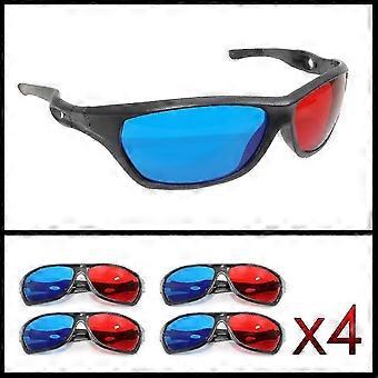 Anaglyph 3d Glasses (red And Cyan Blue), 3d Glasses For Tv Or Computer, Sports Style, Brand 4 Pairs Pack