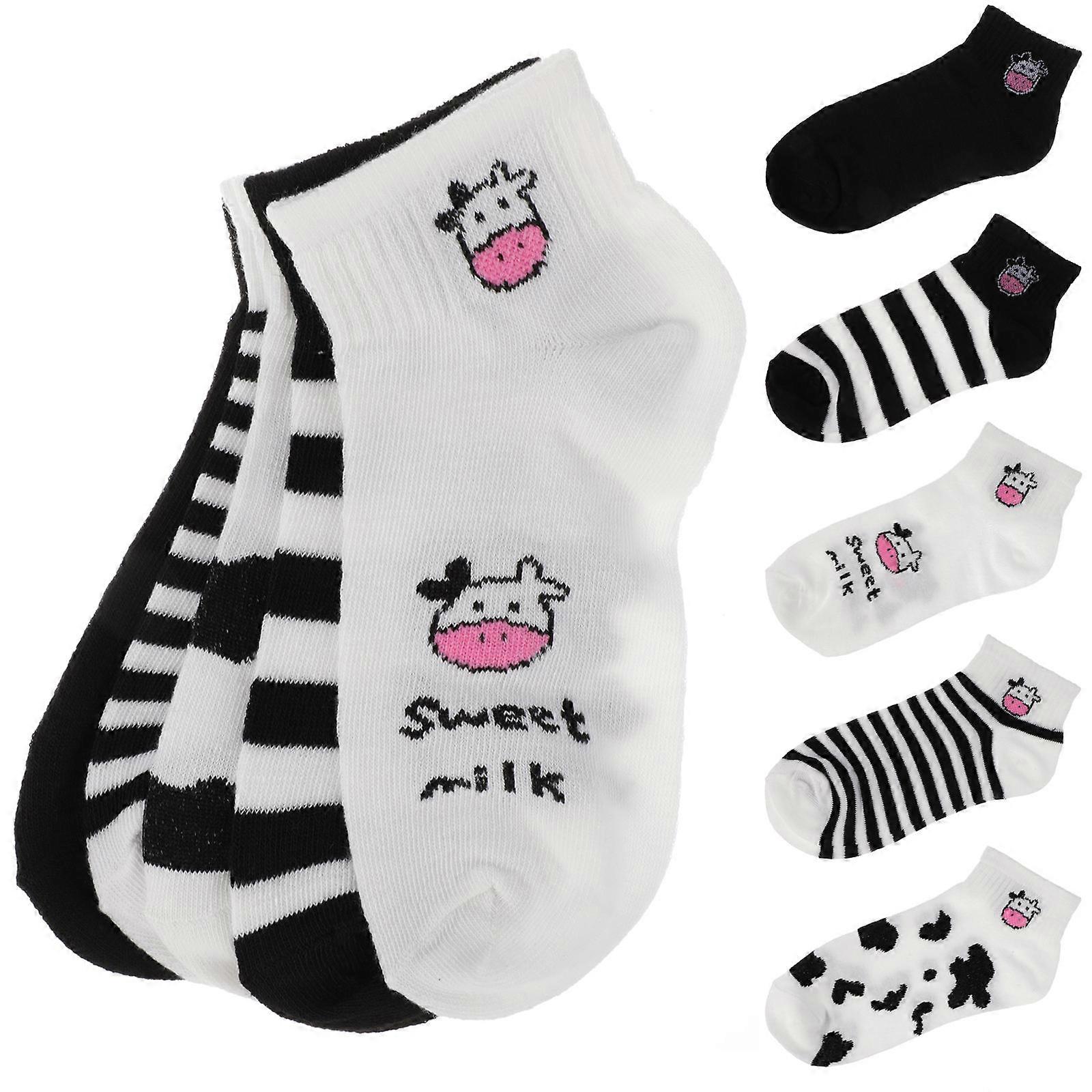Pattern Socks Women 5 Pairs Cartoon Themed Design Assorted Color Short Socks For Kids Teens Girls Protect From Cold Weather