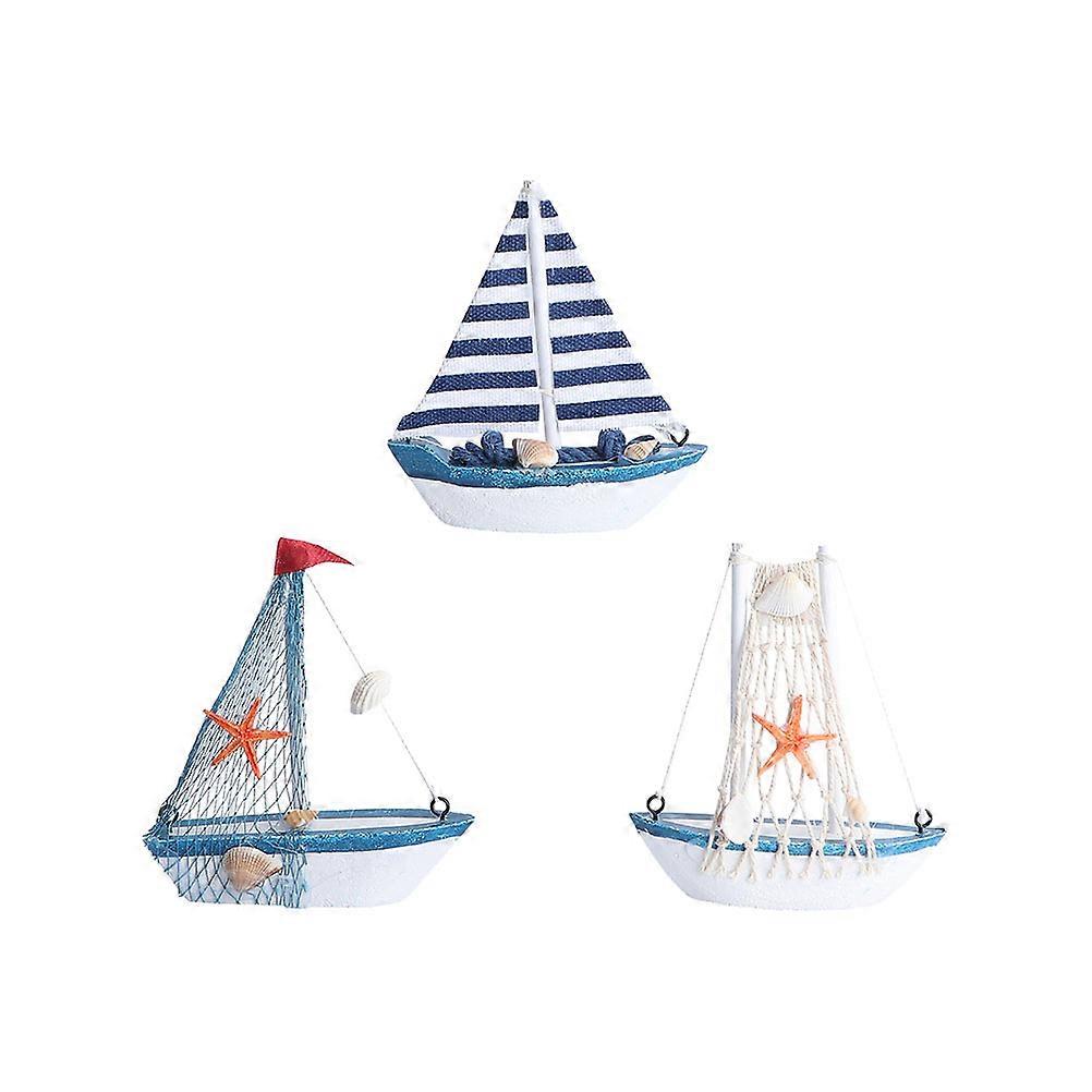 Mediterranean Sailboat Model 3Pcs Wooden Ship Model Ornament Great For Office Tabletop Home Desktop Assorted Color Decorative Purpose