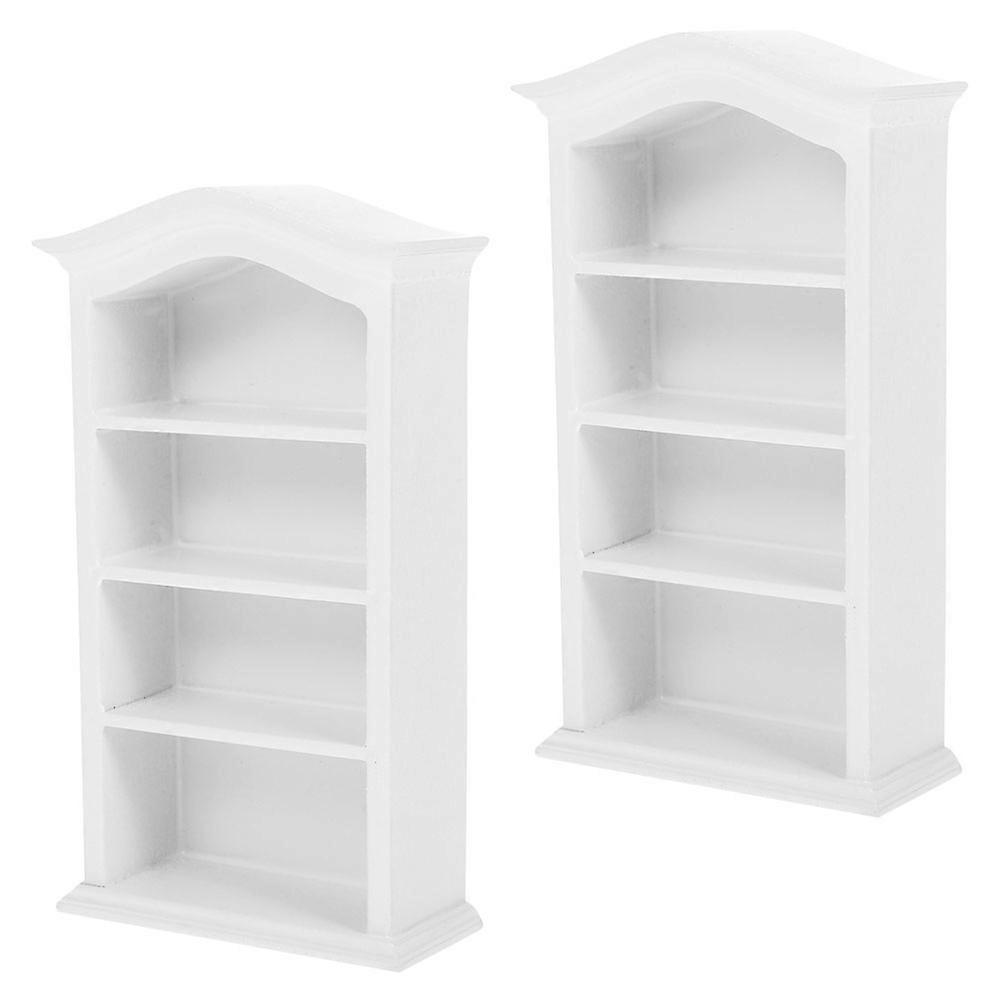 Miniature Bookshelf Model for Doll House Decoration Small Wooden Furniture Brown 2 Pieces