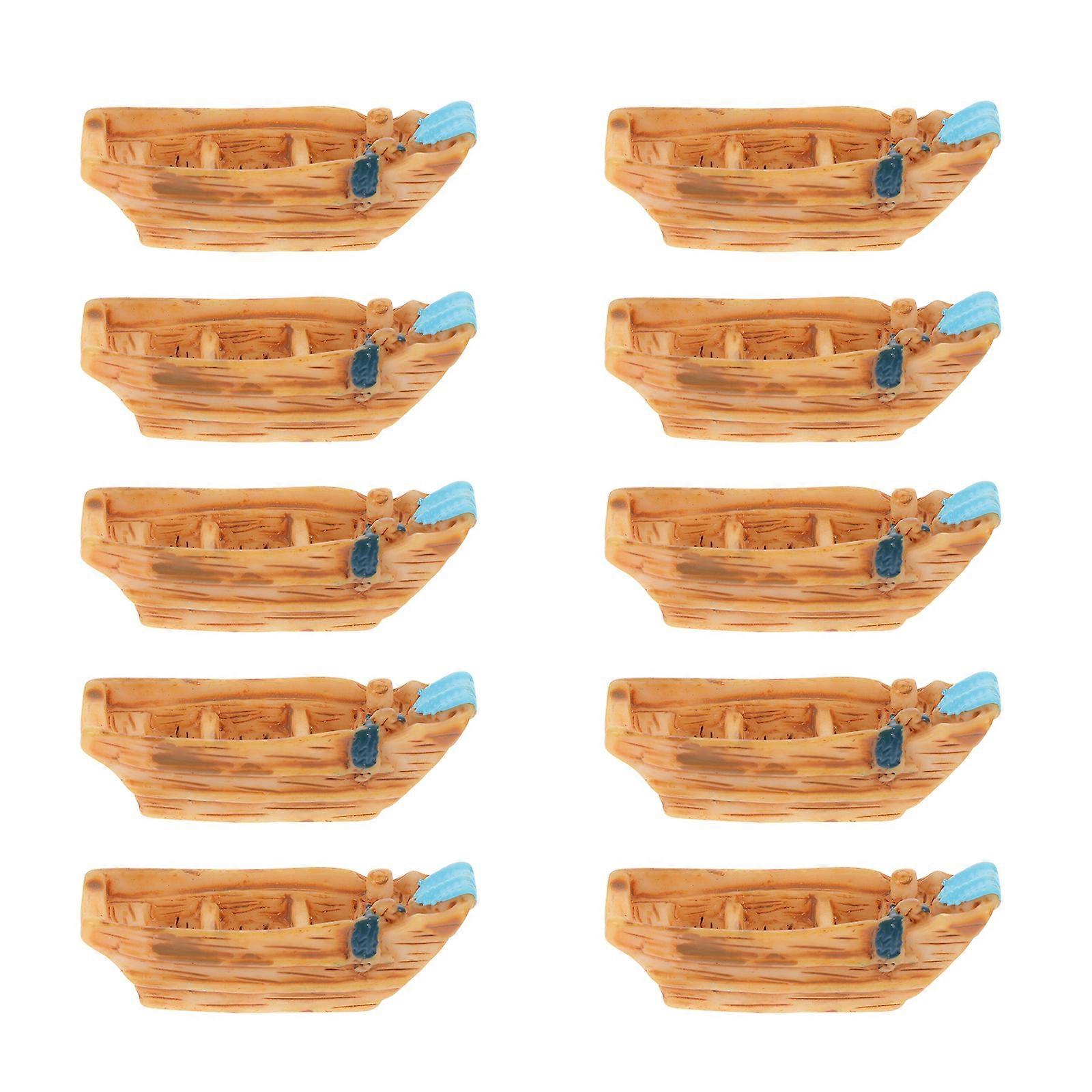 Mini Resin Boat Model for Decoration Crafts with Realistic Shape Light Brown 10pcs