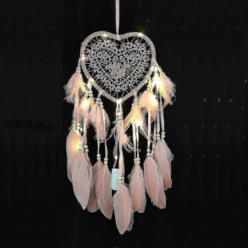 Nirvana Dream Catcher, Boho Style Led Light Handemade For Bedroom Car Decoration, Romantic Wall Hanging Dream Catcher (light Pink, Light)