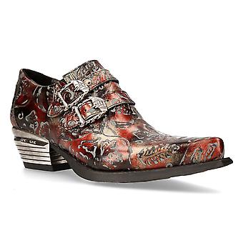 New Rock 7960-S5 Black, Red Leather Buckle Steel Heel Shoes