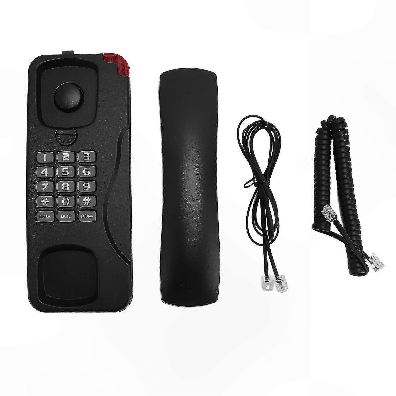 Vintage Black Wall Phone with Redial and Mute for Home Office Hotel Use Corded Retro Telephone