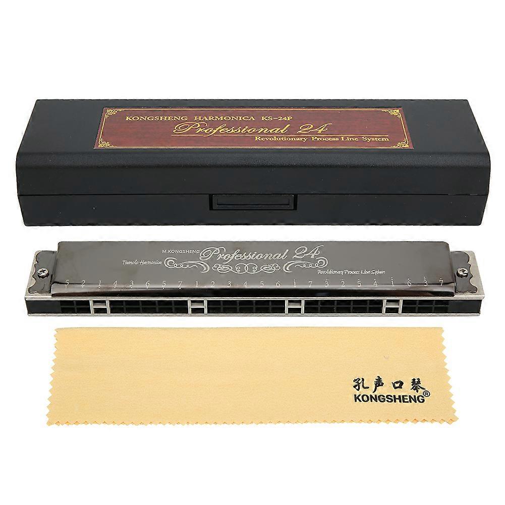 Harmonica Professional Mouthorgan Beginner Gifts 1.2mm Brass Base Plate 24‑Hole Polyphonic(Black G Key)