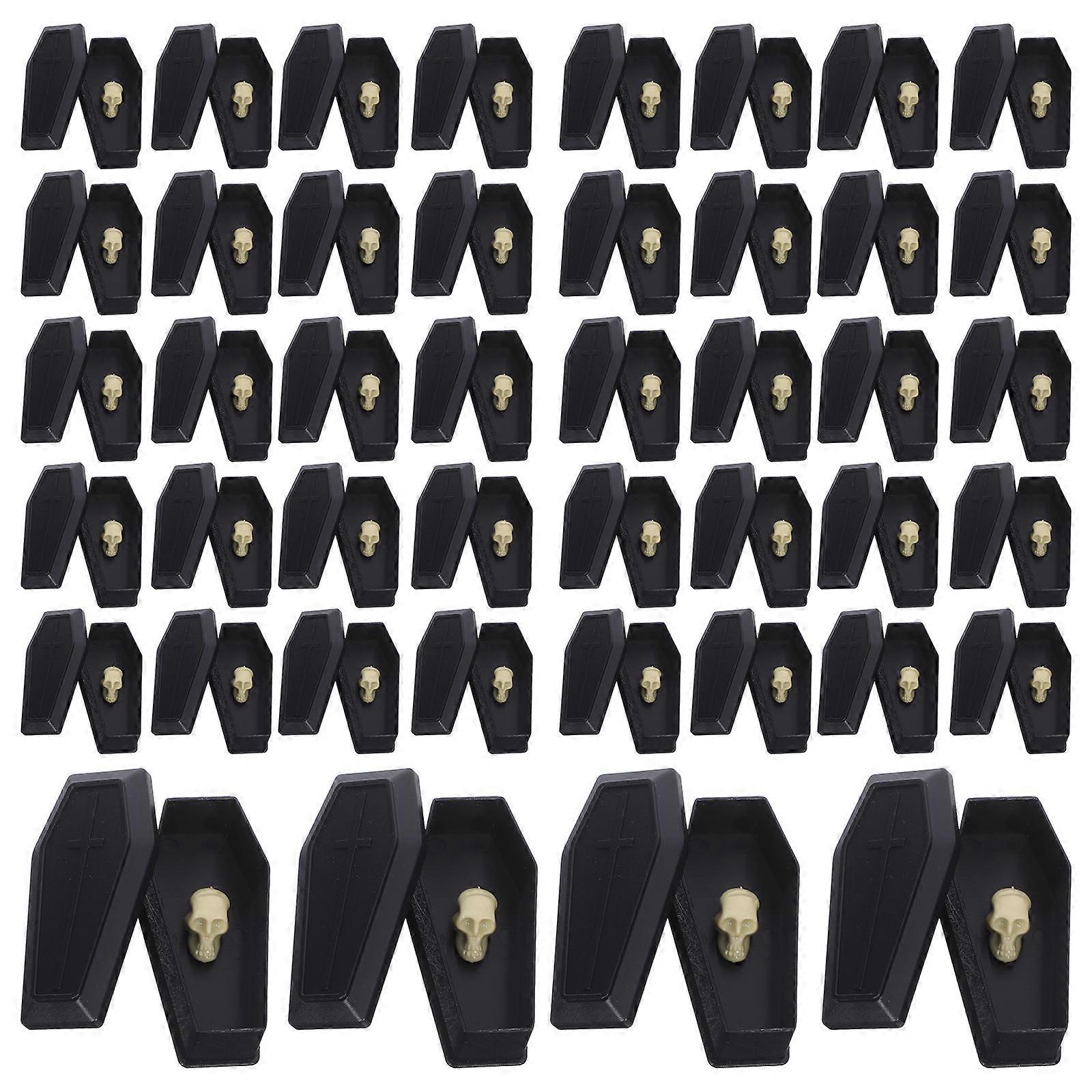 Designed for Halloween decor enthusiasts, this miniature coffin with a skeleton figurine is for crafting, decorating, or pranking. Its black finish and detailed design make it suitable for haunted houses, dollhouses, or party setups. This prop meets the need for unique, spooky, and humorous decorations during the festive season. Features -Color:Assorted Color -Material:Plastic -Size:7.50X4.00X2.50cm/2.95X1.57X0.98in -Size:2.00X1.30X1.10cm/0.79X0.51X0.43in -Unique party accessories: these miniature coffin boxes with skulls are ideal for adding a quirky and spooky touch to your halloween party -Diy crafting fun: assemble and DIY these props to create a DIY halloween decoration experience -Authentic halloween look: the realistic design of the coffins and skeletons enhances the atmosphere of your halloween setup -Reusable and convenient: made from durable materials, these props can be stored and reused for future halloween celebrations -Versatile decoration: suitable for dollhouses, haunted houses, or as party favors, these props are for halloween enthusiasts Package list: 20 x mini coffin figurines 40 x mini skull figurines