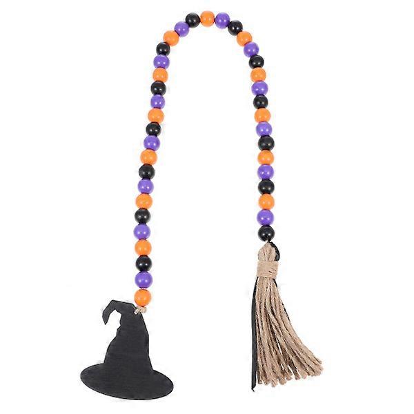 Halloween Wood Bead Garland Pendant Wood Beaded Hanging Ornament with Tassel