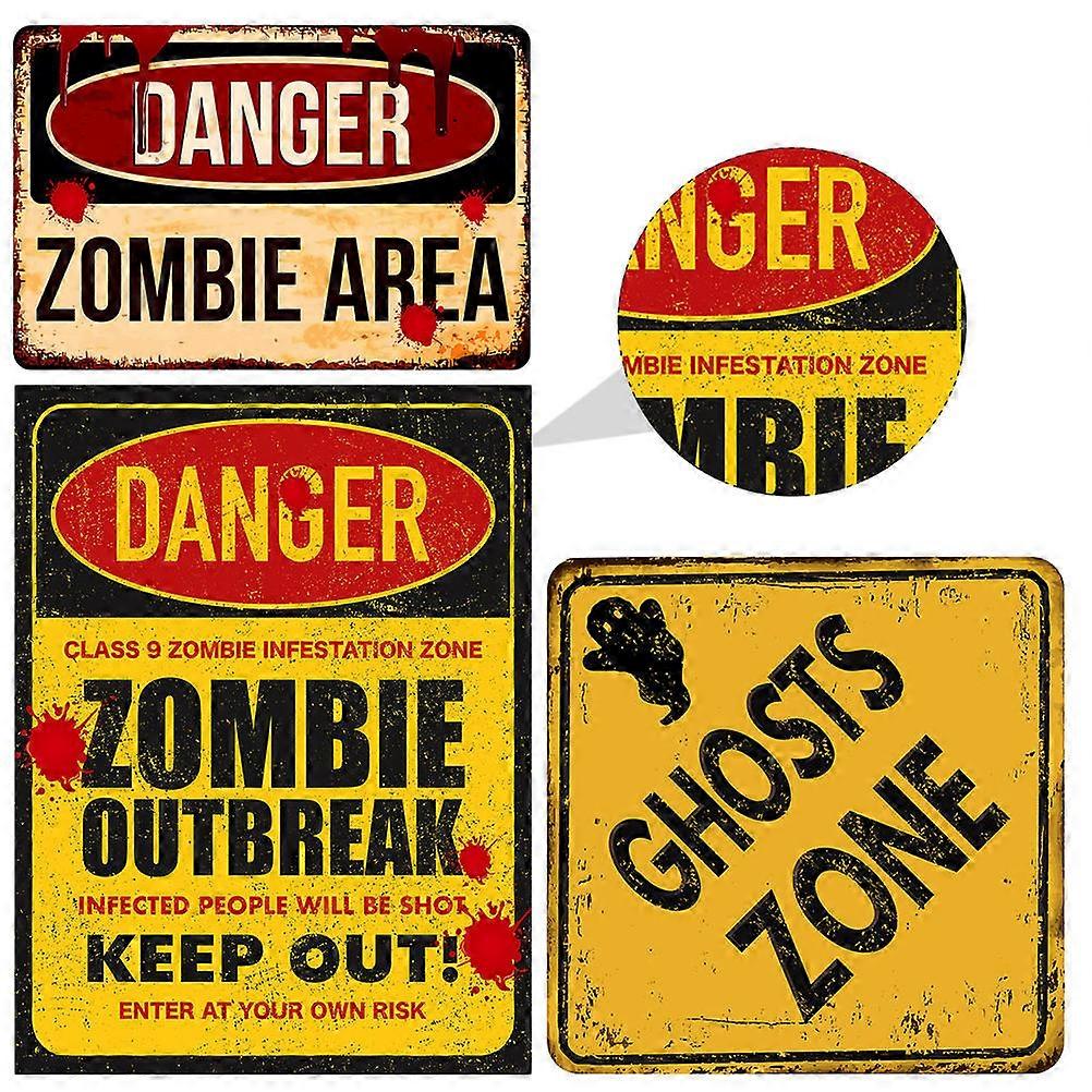 Halloween Decals Warning Sign Bars Square PVC 30x20cm Halloween Theme 3Set