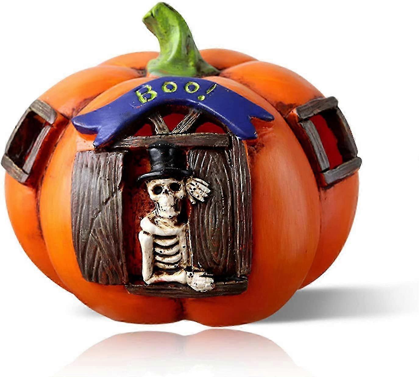 Halloween Pumpkin Skull Lamp, Creative Resin Hollow Pumpkin With Led Skull Light